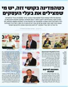 ועידת "עסקים לא כרגיל" – 22/11 כתבה שהתפרסמה בעיתון 'ידיעות תל אביב' על מצוקתם של אלפי עצמאים ובעלי עסקים שעמדה במוקד ועידת ״עסקים לא כרגיל״ שהתקיימה באוניברסיטת רייכמן, ביוזמת ״ידיעות